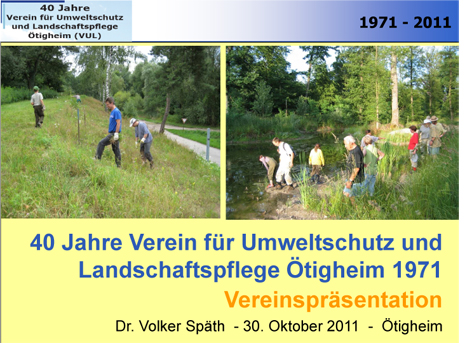 Zahlreiche Mitglieder und Gäste waren am Sonntag, 30.10.2011 der Einladung des VUL in das Geschwister-Scholl-Haus gefolgt, um in einem würdigen Rahmen, mitgestaltet durch ein Ensemble des örtlichen Mandolinen und Gitarrenorchesters, Rückblick auf 40 Jahre Wirken im Dienste des Umweltschutzes zu halten.